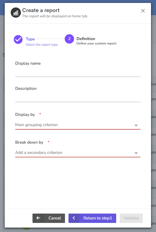 - Break down by (formerly Aggregation 2) : This data enables you to subdivide the display according to a second criterion.